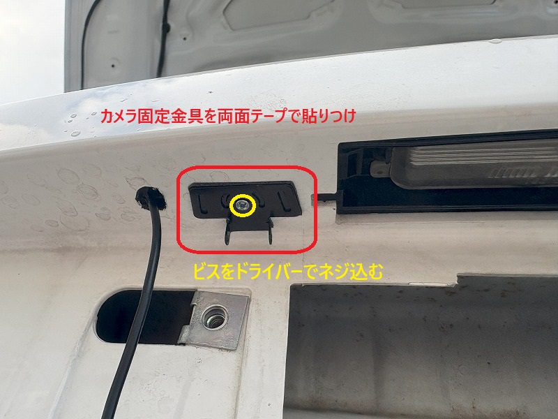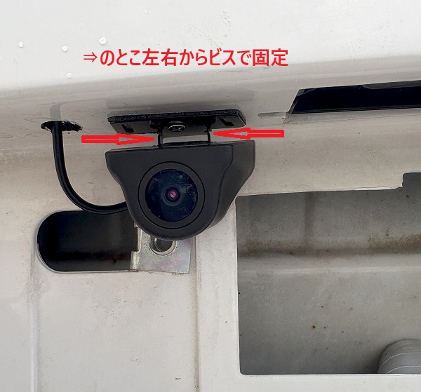 バックカメラを金具にハメ込み両端からボルトで固定します。