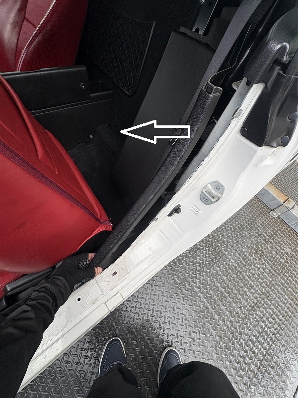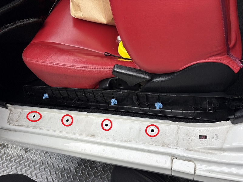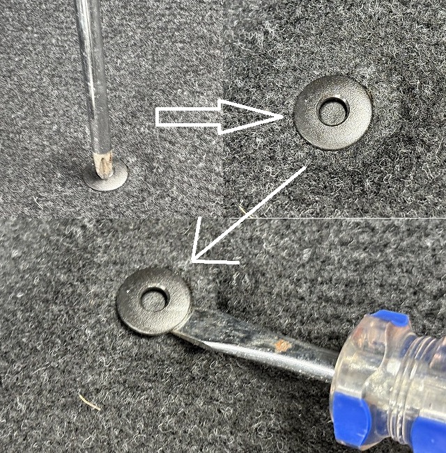 マットを固定しているプラスチック製のピンが4ヶ所あるので外します。