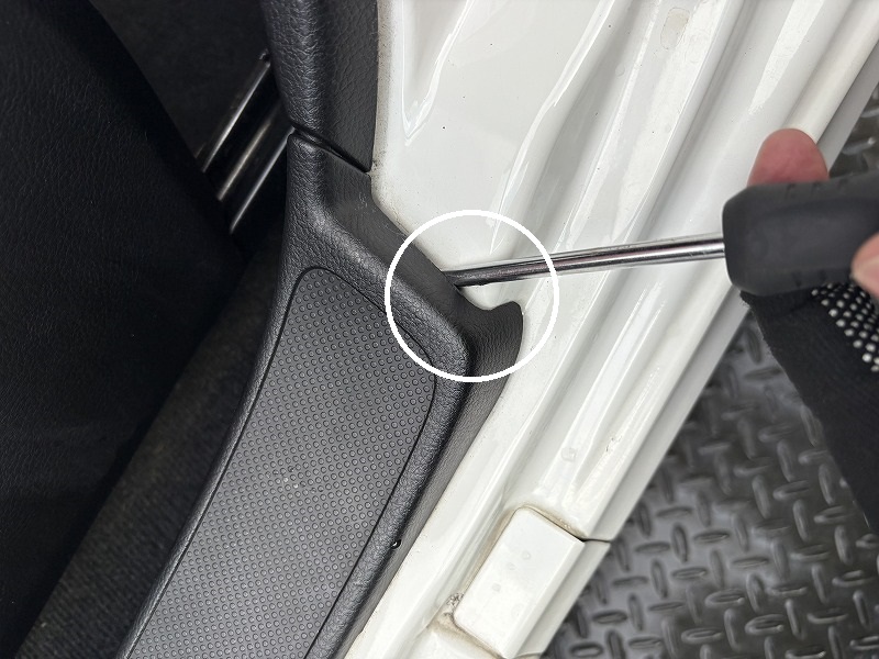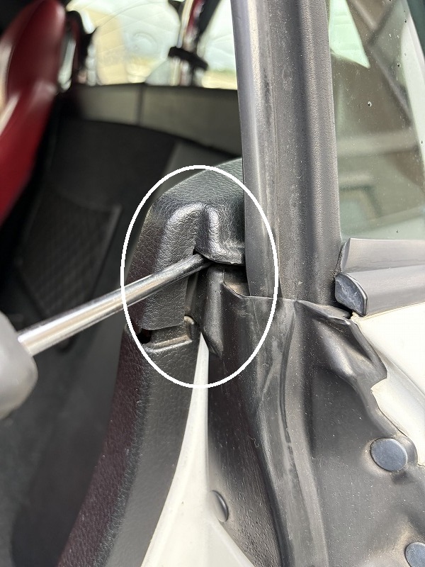 ピンの外側に写真のようにマイナスドライバーを入れて