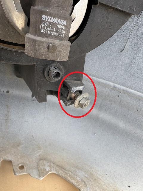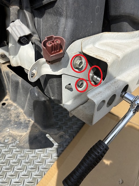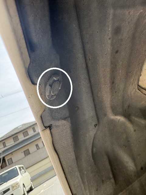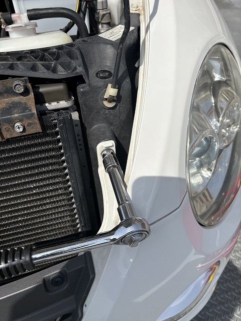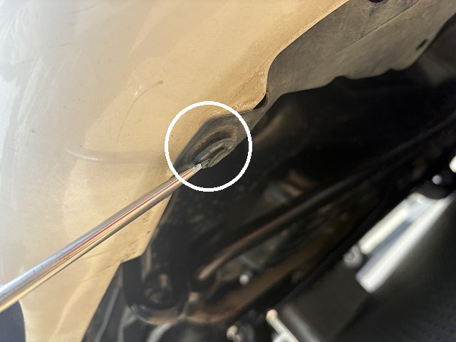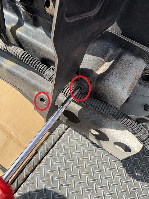 フェンダーの奥のフォグランプの少し下にもう一個(ここはナットです)