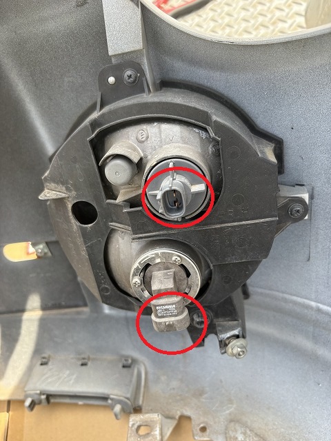 次はフォグランプの所の配線2個のコネクターを抜きます。