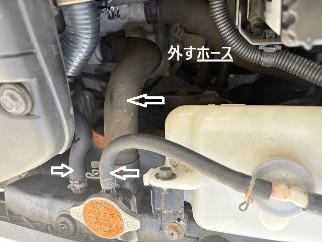 矢印のホースを外します。