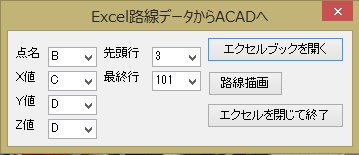 エクセルAutoCADに線と点名を描画の無料ダウンロードはこちら