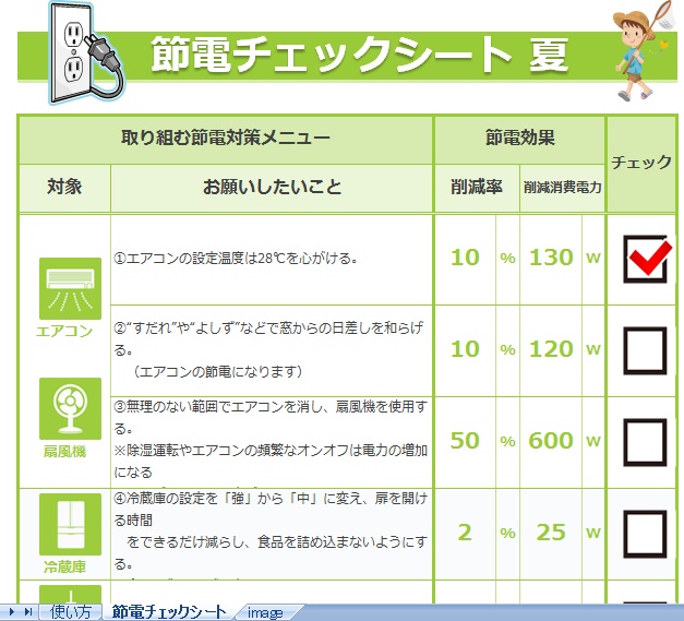 節電チェック シート(エクセル)の無料ダウンロードはこちら