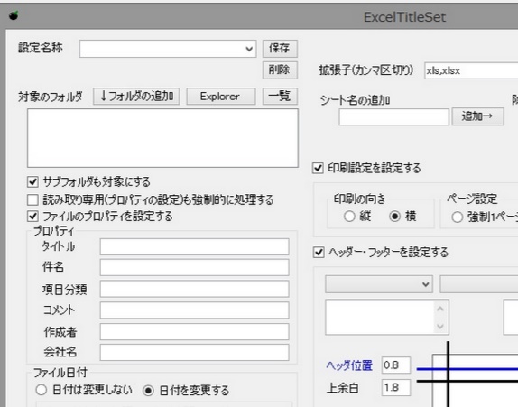 指定したフォルダのエクセルファイルのヘッダ/フッタ、