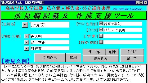 進路関係所見文作成支援用[進路所見]の