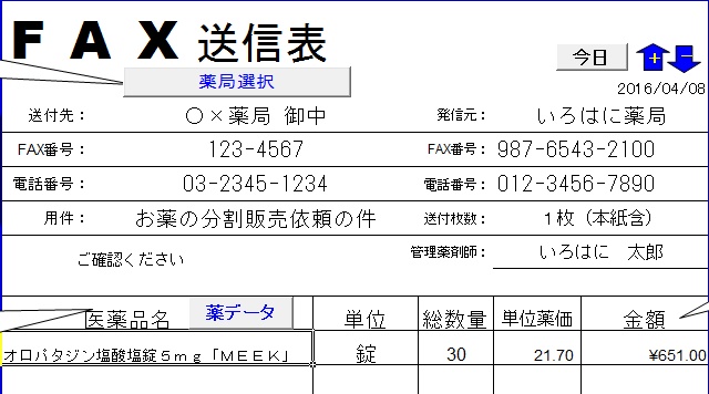エクセルで医薬品零売のFAX送信表を作成するプログラムです。