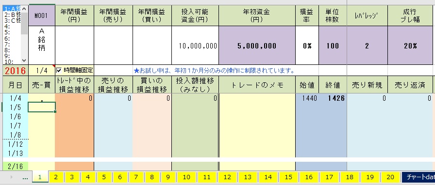 お試し中は、年初1か月分のみのチャート利用に制限されます。