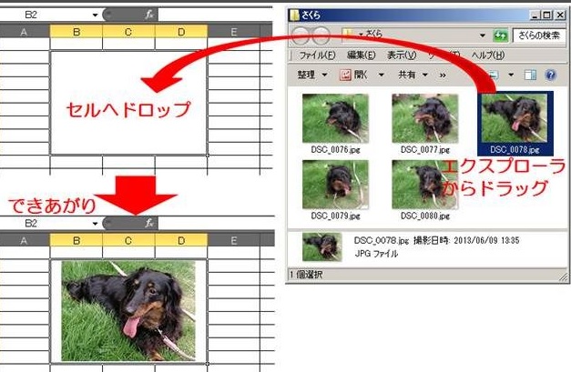 ドラッグ&ドロップでExcelへ写真(画像)データを貼付ける