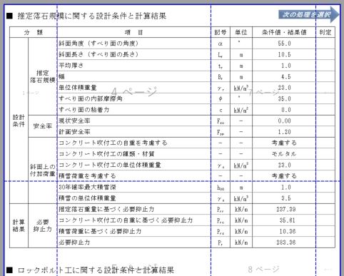 「落⽯対策便覧;公益社団法⼈ ⽇本道路協会,平成 12 年 6 ⽉,pp.342-348」に準拠した ロックボルト併⽤吹付⼯の設計計算書を作成します。