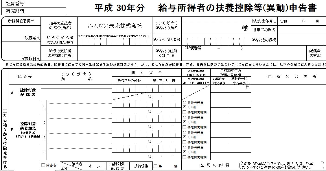 給与所得者の扶養控除等(異動)申告書EXCEL版(H30年分)は