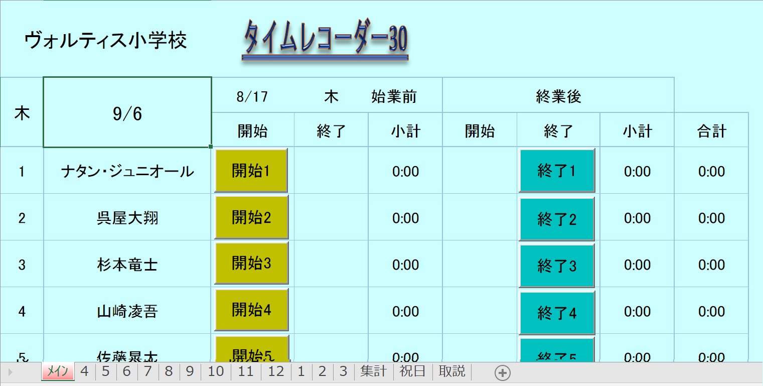 タイムレコーダー30はマイクロソフトのエクセルで主に学校の職員の超過勤務時間の管理を行うためのソフトです。