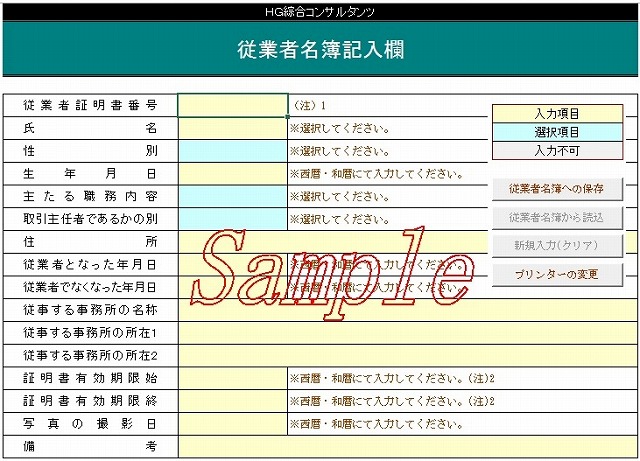 「従業員名簿」を記帳しているのですが、これをデジタル化して従業者名簿と従業者証明書を印刷できるようにしました。