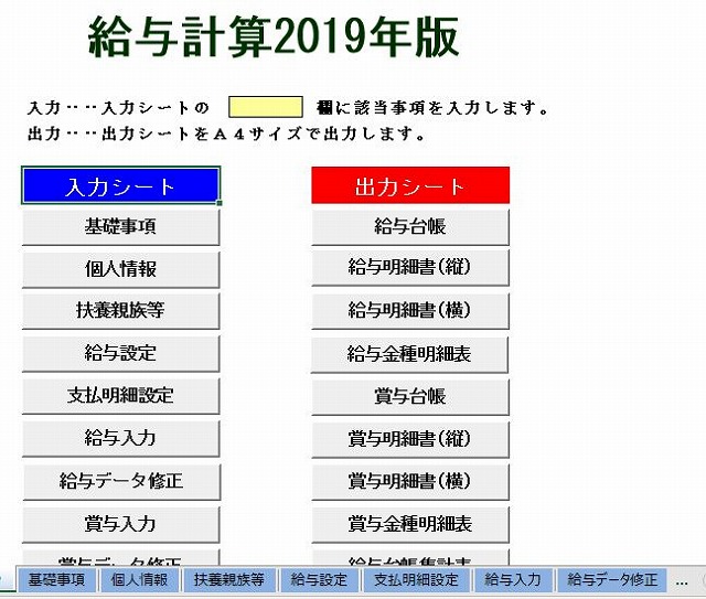 「EXCEL給与計算2019」は2019年分の給与計算・年末調整を行い、