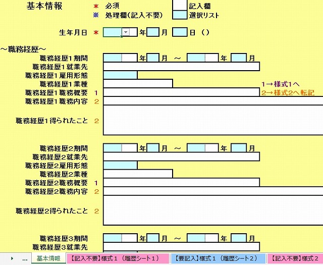 基本情報シート上で入力および計算します。