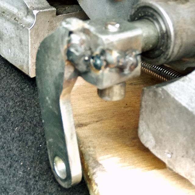 シフトのスピンドルとシフトレバーを溶接して固定することにしました。