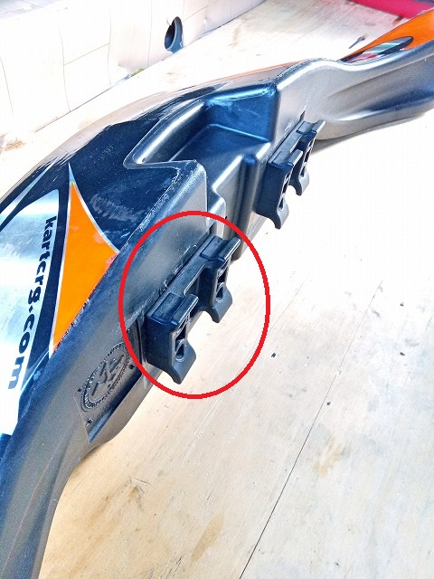 次のはCRGのフロントカウルですが、赤丸がしてある部分の取り付けパーツが左右2個必要です。