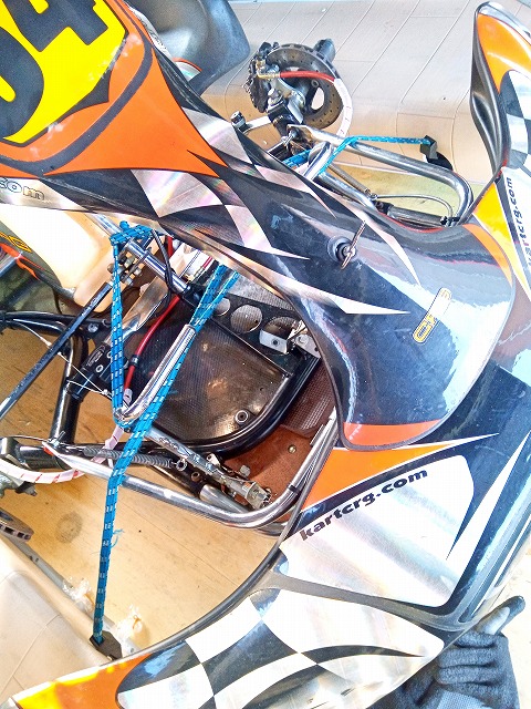 フロントも固定しないと車のバウンドでカートも跳ねてしまいます。
