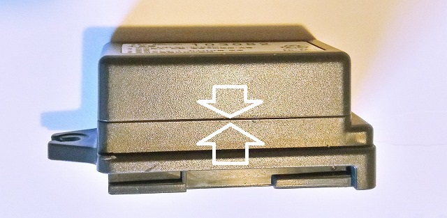 次の写真の矢印のラインにカッターを入れてフタを外すらしい。