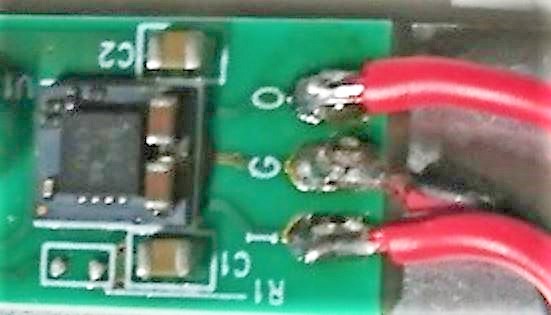 コンバーターで電圧を下げた出力を元の電池の配線へハンダ付します。