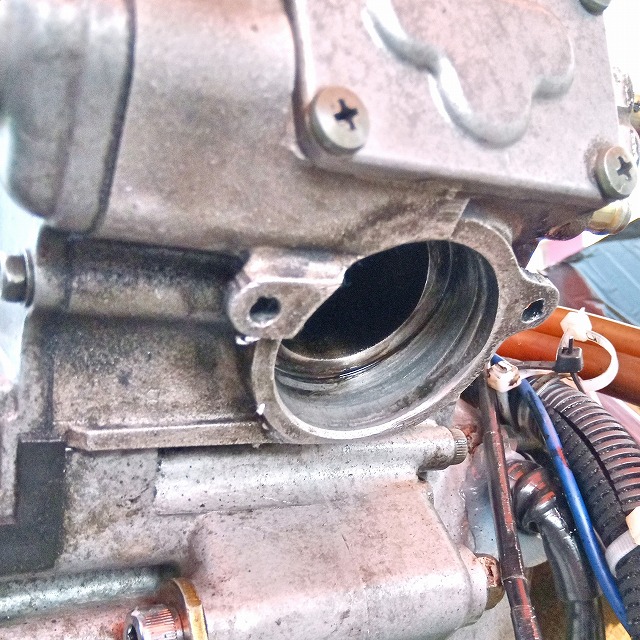 E120は4PEとは逆にチャンバー取り付け部のエンジン側は